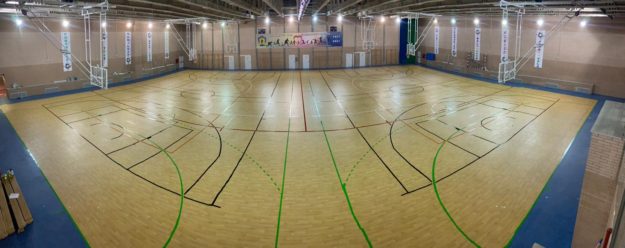 Actuación: Suministro de equipamiento completo con juegos de canastas con sistema hidráulico basket/minibasket y sistema de resinas multicapa.