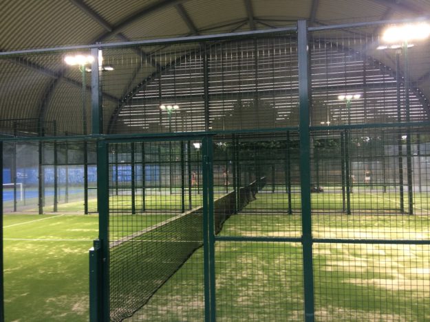 Actuación: Adaptación de una pista de tenis para tres pistas de pádel con cubierta metálica curvada y sustitución de pavimento en dos pistas de tenis.