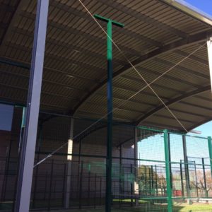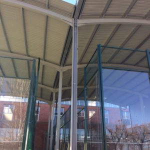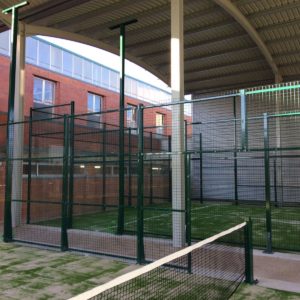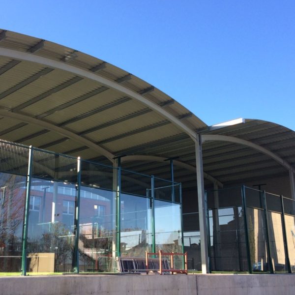 Type: 2 covered padel courts Works carried out: foundations, concrete floor for paddle, installation of the paddle court and artificial turf. Installation of a curved cover.